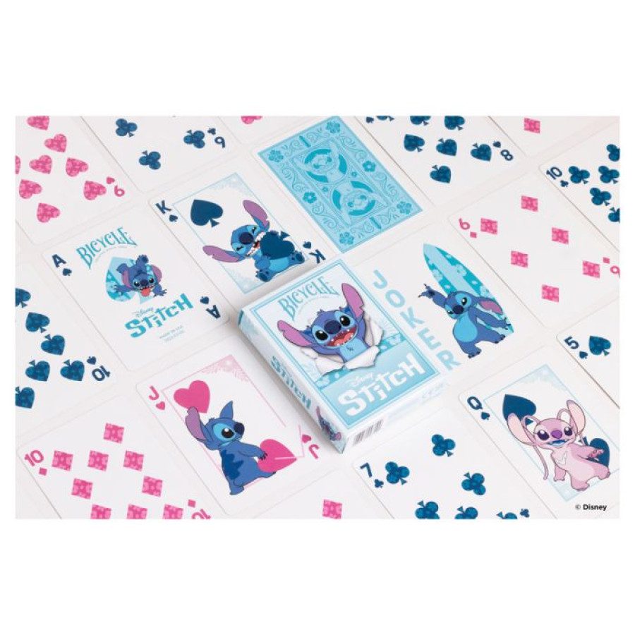 Stitch is tearing his way through the tuckbox and into our hearts with Disney Stitch Inspired Playing Cards by Bicycle. Bring the Hawaiian magic of Ohana home to your family! Experiment 626 is causing mischief throughout the 54 cards, along with his “boojiboo” Angel on the court cards!